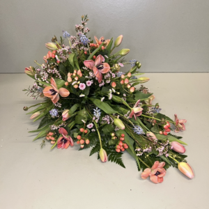 Søger du den rette blomsterhilsen til en begravelse eller bisættelse? Hos Design-Flower skaber vi smukke bårebuketter, kranse og blomsterarrangementer, der udtrykker dine følelser på en respektfuld og hjertelig måde.